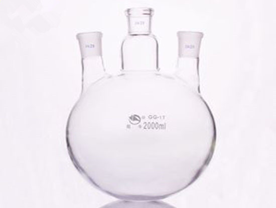 是一個(gè)短頸、厚口、園底燒瓶,在瓶體肩部的周圍焊接有三口(三頸),四口(四頸)的燒瓶。瓶頸的角度分為直頸與斜頸二種。多口,主要為配合復(fù)雜的實(shí)驗(yàn)操作,可同時(shí)裝配更多的配合儀器。直口:因各種配件都是垂直裝置,瓶中心空脈大,便于攪拌溶液,不易損壞其它配件儀器而設(shè)計(jì)。但它的缺點(diǎn)是由于直口,加料時(shí)僅能加到瓶底的一邊,使加料的均勻性受到影響;由于直口瓶底中心空隙大,但在瓶底表面空隔就小,特別小規(guī)格使瓶體肩部瓶頸密集,按裝圖難,有時(shí)無(wú)法按裝。斜口:由于角度為斜角(有10* 斜角或25。斜角),加料時(shí)可以直接均勻的加到瓶底的中心,瓶體表面各種儀器配件裝配亦成斜角,由于瓶的肩部空隙大,口頸間距大,按裝容易,特別小規(guī)格更明顯;但瓶底的中心空蹤位置少,攪拌時(shí)發(fā)生困難,容易損壞其它配件儀器。因此這兩種設(shè)計(jì)均有優(yōu)點(diǎn)與缺點(diǎn)。